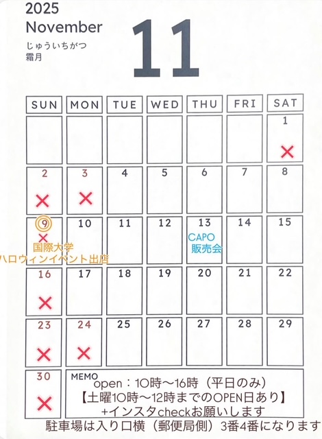 11月の営業日はカレンダーをご確認下さい