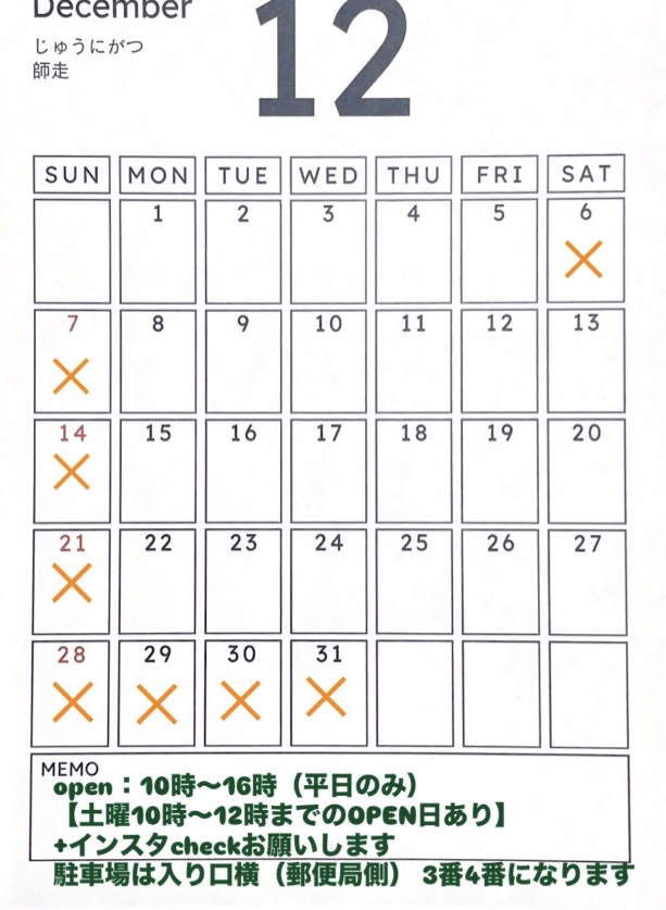 ★年末年始は12/28㈰~1/4㈰迄お休みとさせていただきます