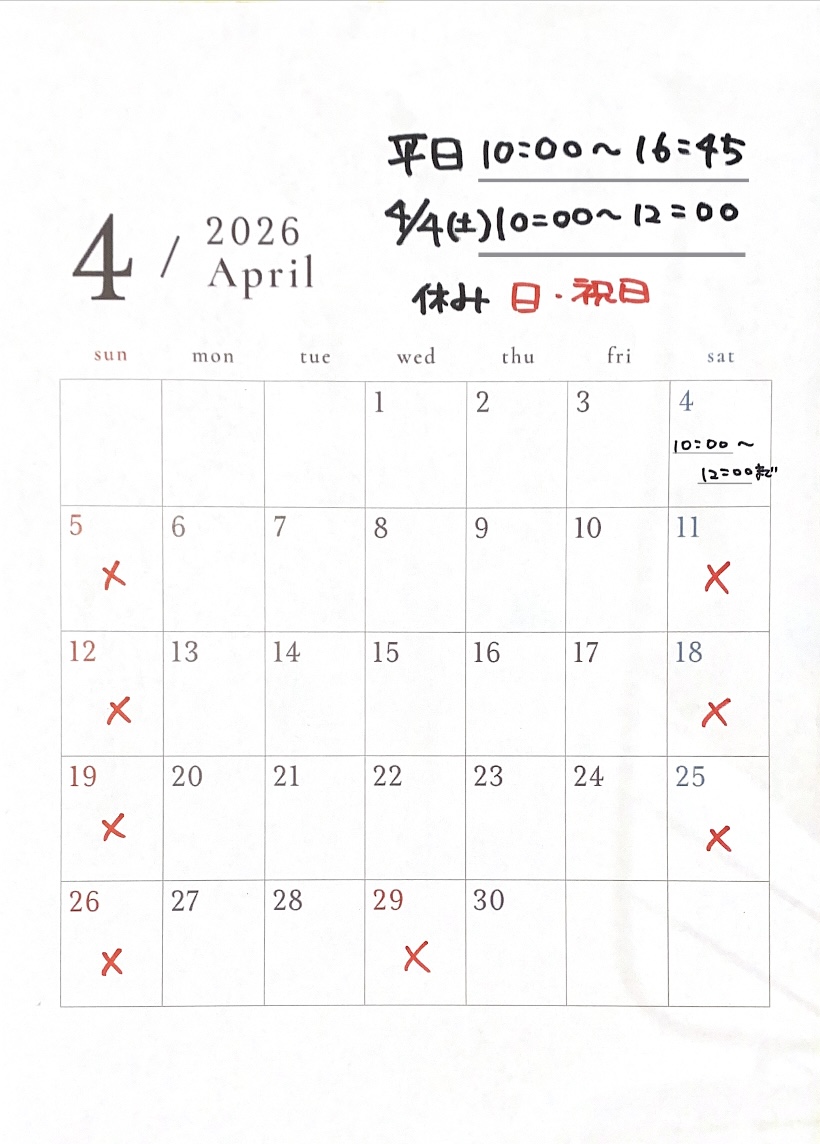 4月の営業日のお知らせです!